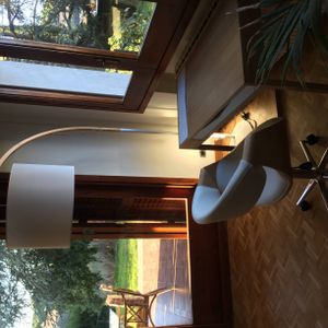 Silla de escritorio moderna polipiel blanca/madera clara ARAMIS